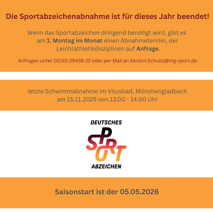 - Das Sportabzeichen wird vom Prüfer digital an den Stadtsportbund Mönchengladbach e.V. übermittelt.