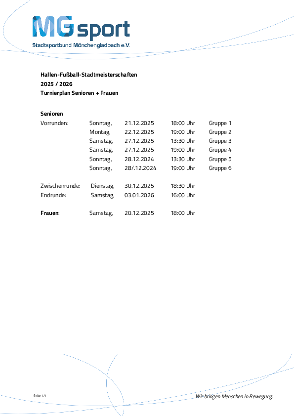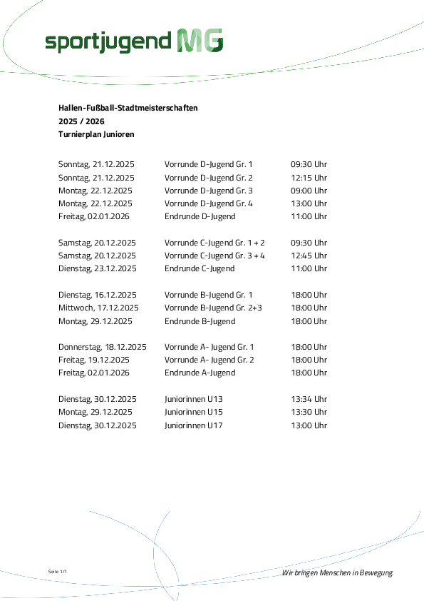 Die Hallenfußballstadtmeisterschaften finden vom 16.12.2025 bis 03.01.2026 in der Jahnhalle statt.